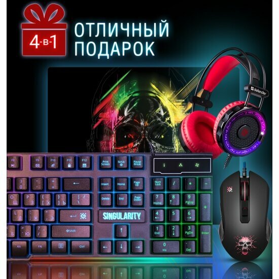 Комплект: мышь, клавиатура, гарнитура, коврик Defender Singularity MKP-118 (52118 ): сравнение цен, характеристики, фото, актуальное наличие и цены.