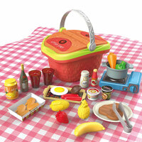 Комплектность: Корзина-1 шт, тарелка - 1 шт, поднос-1 шт, кастрюля-1 шт, стаканчик -2шт, плитка (имитация) -1шт, щипцы-1шт, продукты и напитки-20шт.
