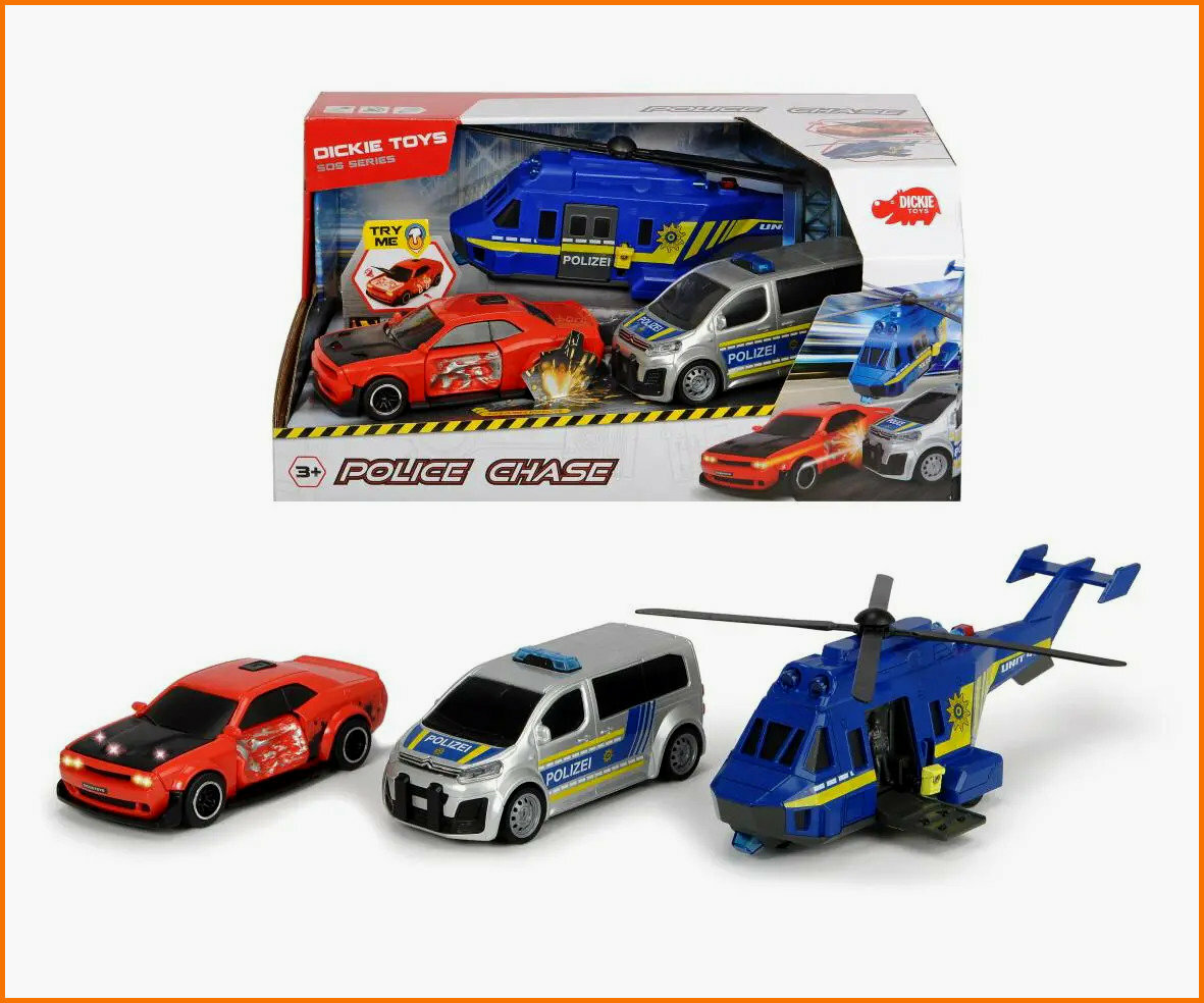 Игровой набор Dickie полицейская погоня, вертолет и 2 машинки со светом и звуком: сравнение цен, характеристики, фото, актуальное наличие и цены.