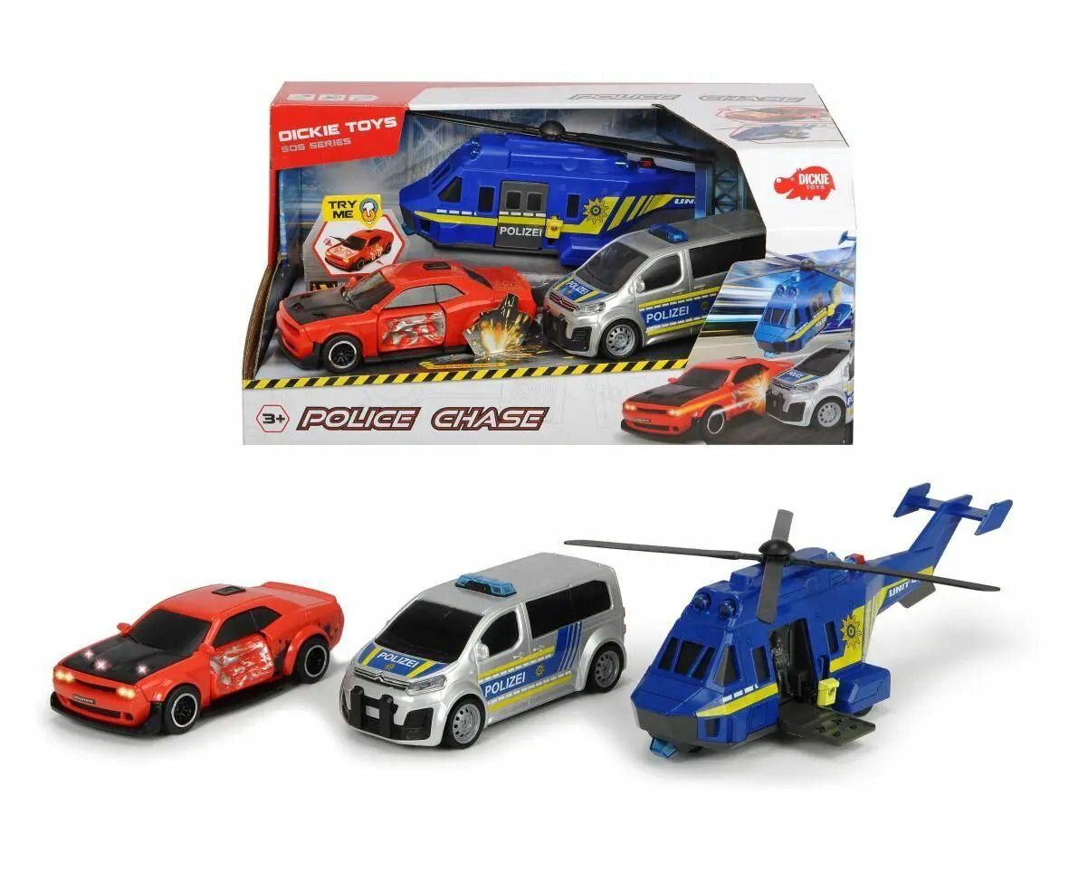 Игровой набор Dickie полицейская погоня, вертолет и 2 машинки со светом и звуком: сравнение цен, характеристики, фото, актуальное наличие и цены.