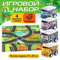 Игровой набор «Динопарк» детских инерционных машинок для мальчиков, маленькие пластиковые машинки-игрушки для малышей, 4 автомобиля, коврик-дорога: сравнение цен, характеристики, фото, актуальное наличие и цены.