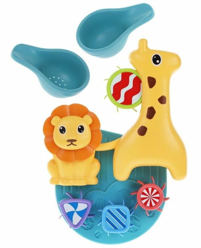 Игровой набор для ванны «Зоопарк» превратит каждое купание малыша в яркое и увлекательное приключение! Сначала кроха познакомится с очаровательными животными – жирафиком и львенком, а потом самостоятельно запустит настоящие водные карусели, наливая воду в воронку при помощи черпачка. Вода будет весело растекаться по всей игрушке и приводить в движение солнышко, гриву льва, а также фигурные элементы – треугольник, квадрат и круг. Наблюдать за этим завораживающим зрелищем так интересно!