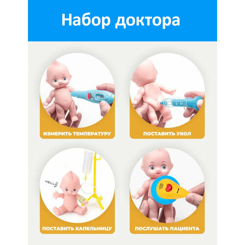 Набор доктора детский способствует развитию моторики рук и координации движений, а также помогает формировать положительное отношение к медицине и врачам.