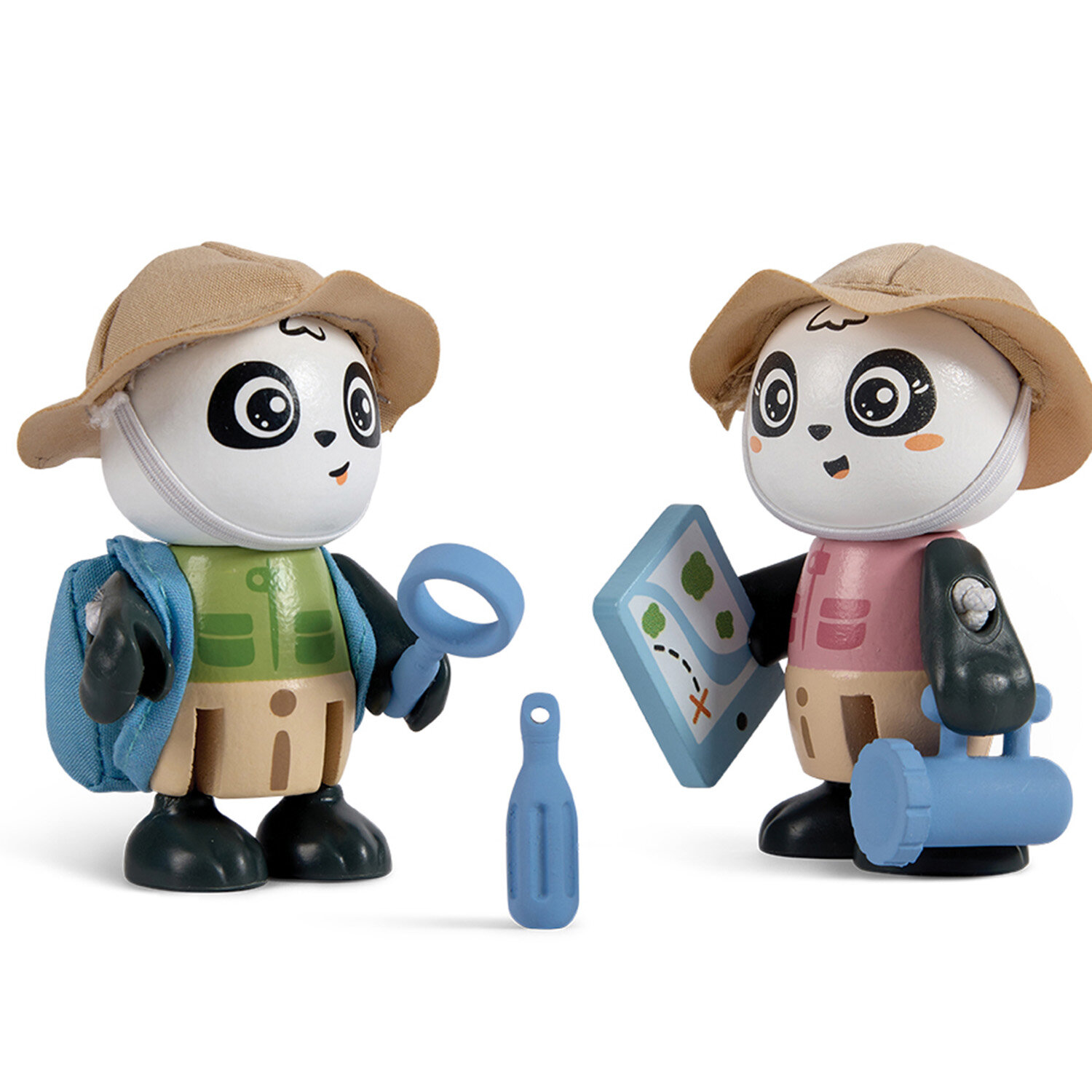 С помощью этого игрового набора малыши могут отправить своих маленьких друзей в незабываемое экологичное путешествие! В наборе вы найдете игровые фигурки: 2 панды, рюкзачок, планшет с картой, 2 шляпы, фонарик и увеличительное стекло, бутылка для воды, которые позволят сделать сюжетно-ролевую игру увлекательной и реалистичной. Набор развивают логику, пространственное мышление, навыки решения проблем, способствует развитию мелкой моторики. Игрушка изготовлена из высококачественных материалов, покрыта нетоксичной краской на водной основе и совершенно безопасна для малышей.