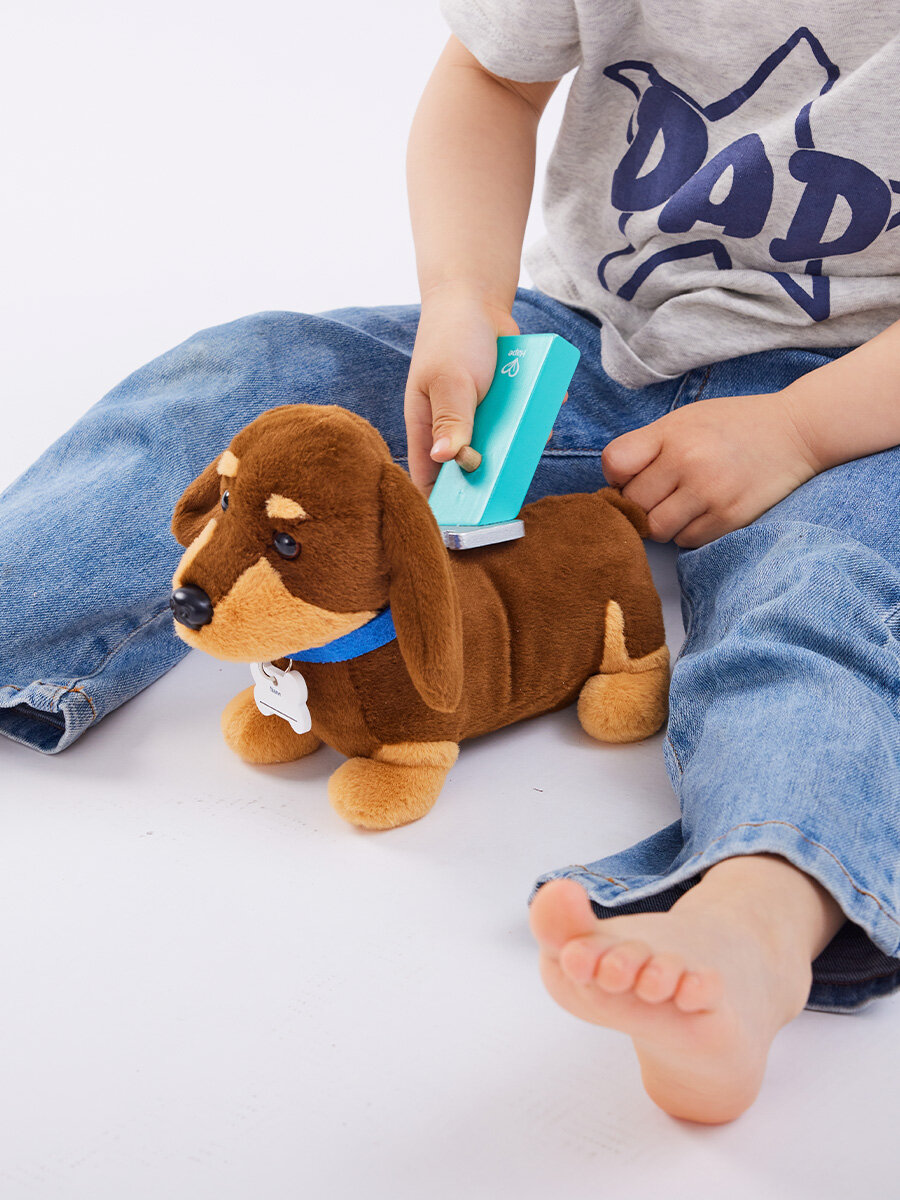 В комплекте идет милый щенок, который реагирует звуками на действия ребенка, создавая атмосферу настоящего общения с питомцем и делая игру особенно увлекательной. Можно придумать ему имя и нанести его на именную бирку.