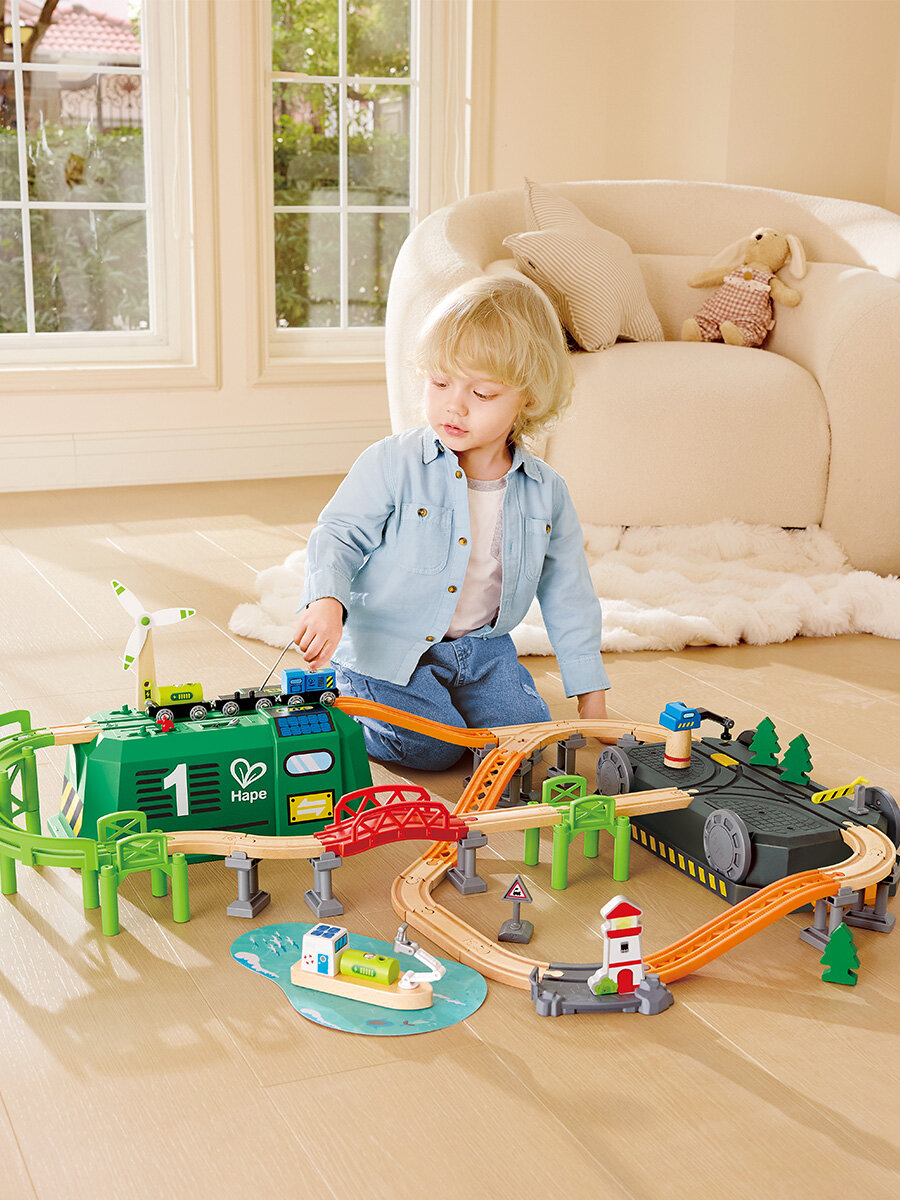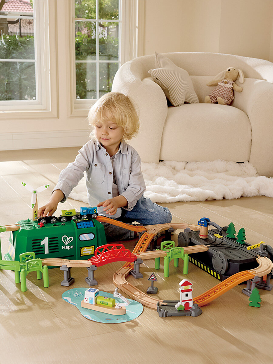 • Безграничные возможности развития: совместим с другими наборами железнодорожных путей Hape, открывая неограниченные перспективы для роста и изучения новых маршрутов.