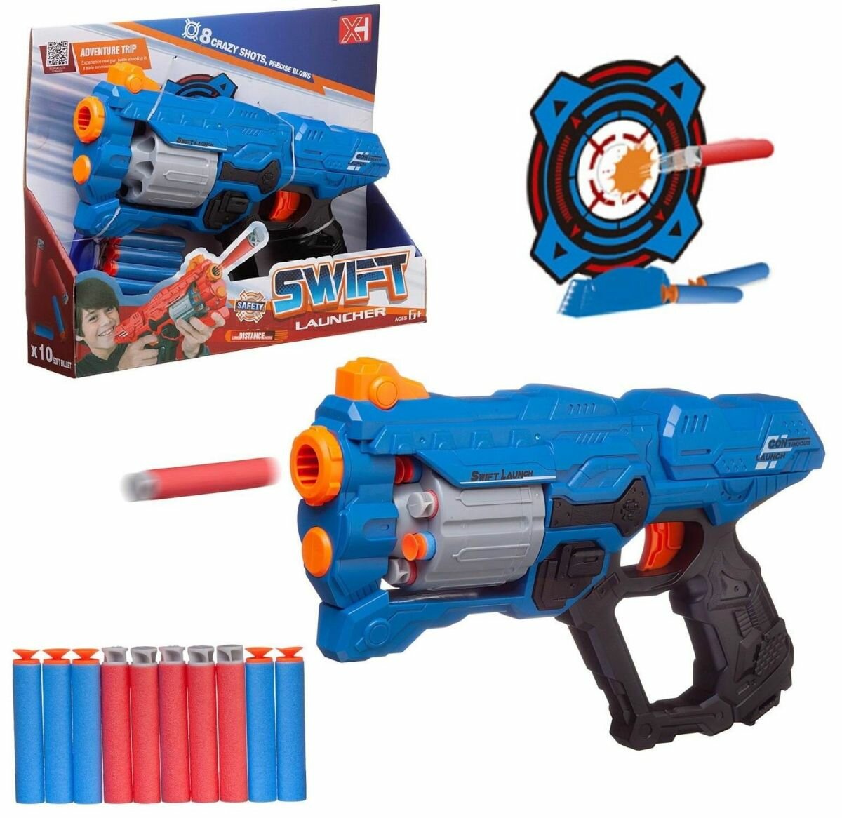 Игровой набор Junfa бластер космический с барабаном, 10 мягких пуль, мишень синий: сравнение цен, характеристики, фото, актуальное наличие и цены.