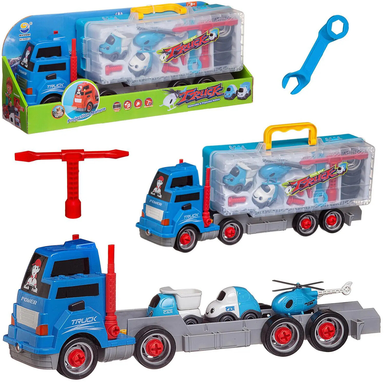 Купить Игровой набор Junfa Грузовик с машинками и запчастями в чемоданчике, голубой с доставкой по всей России.