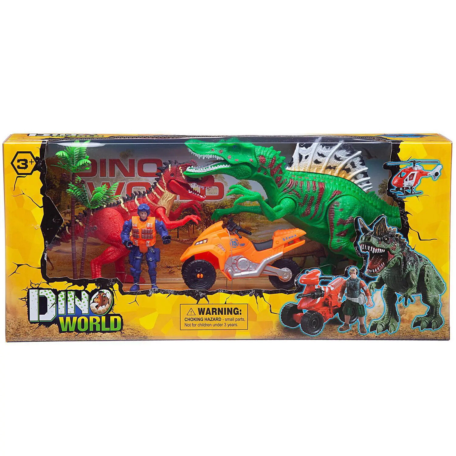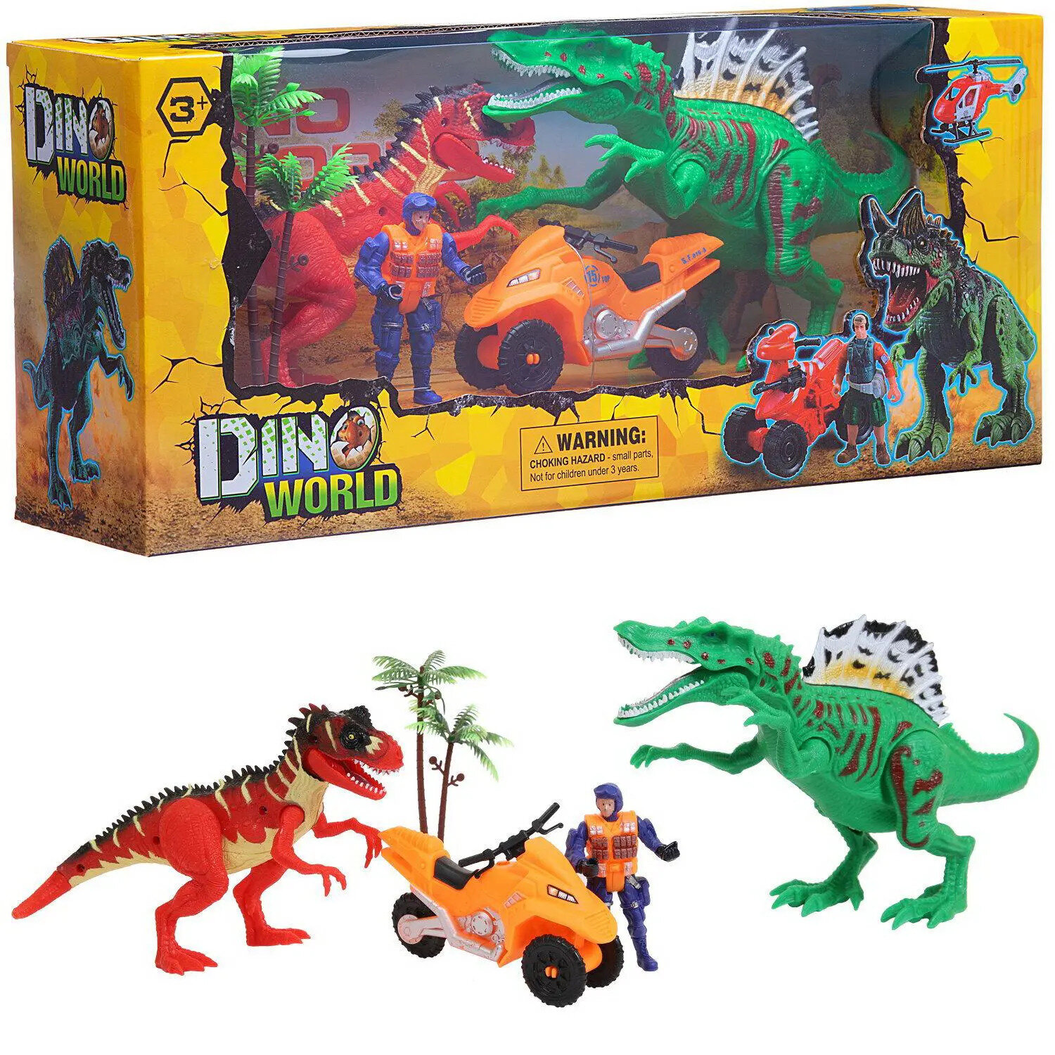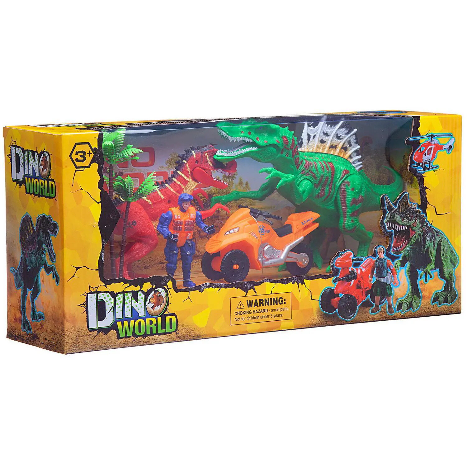 Купить Игровой набор Junfa «Мир динозавров» (2 больших динозавра, мотоцикл, фигурка человека, аксессуары) с доставкой по всей России.