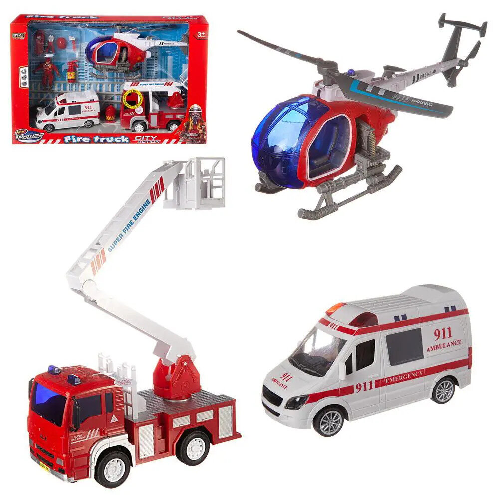 Игровой набор Junfa Служба спасения (пожарная машина, скорая помощь, вертолет, аксессуары), со световыми и звуковыми эффектами, в коробке: сравнение цен, характеристики, фото, актуальное наличие и цены.