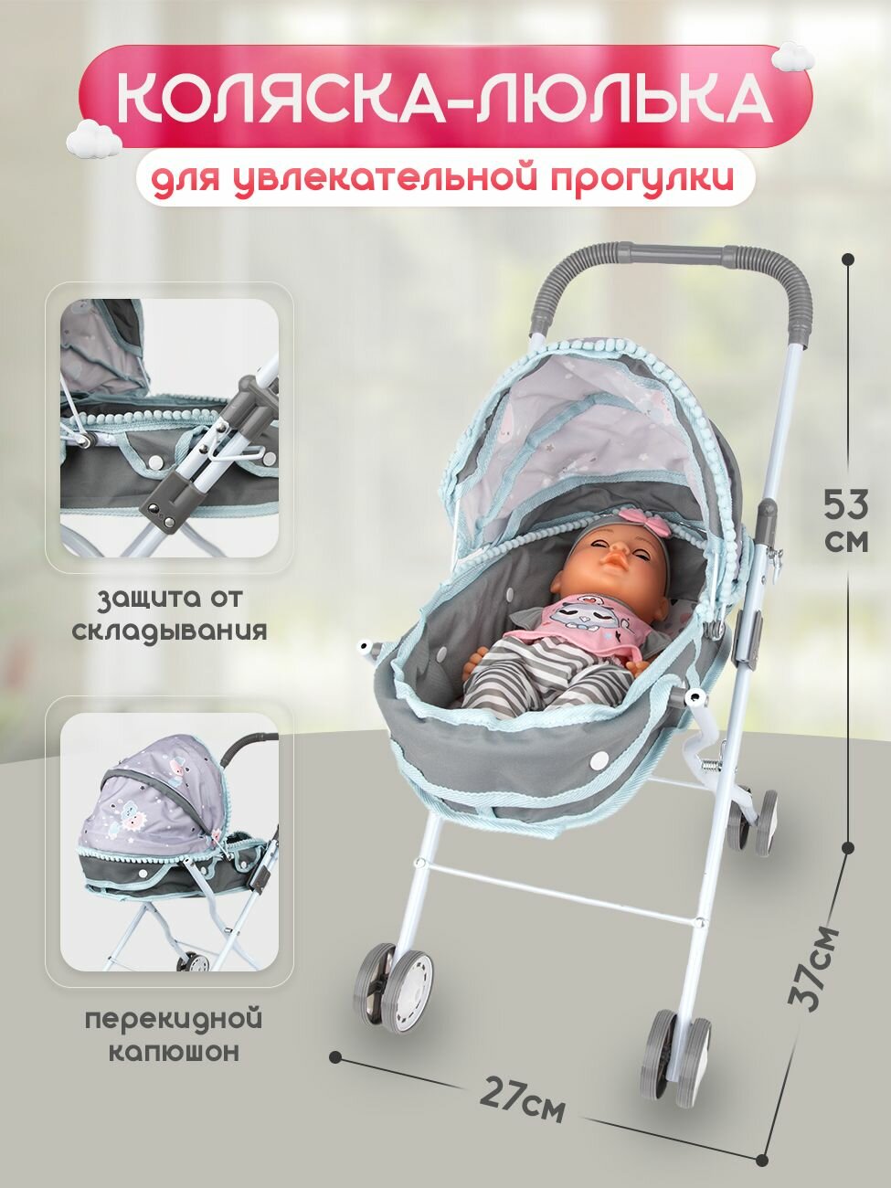 · Коляска для кукол с перекидным капюшоном, которую легко можно сложить, чтобы взять игрушку с собой. Специальный механизм защищает от складывания в неподходящий момент.