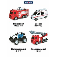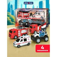 Купить Игровой набор машинок Play Okay спасательная спецтехнкика для детей, пожарная машина и полиция, инерционные, 4 шт с доставкой по всей России.