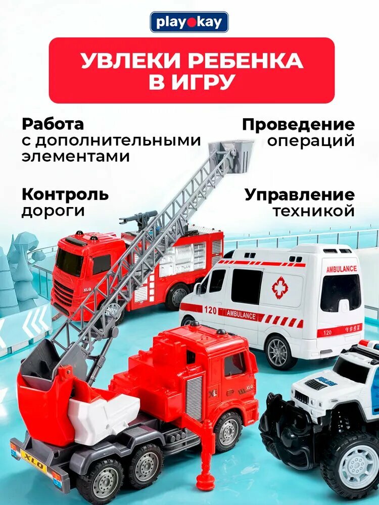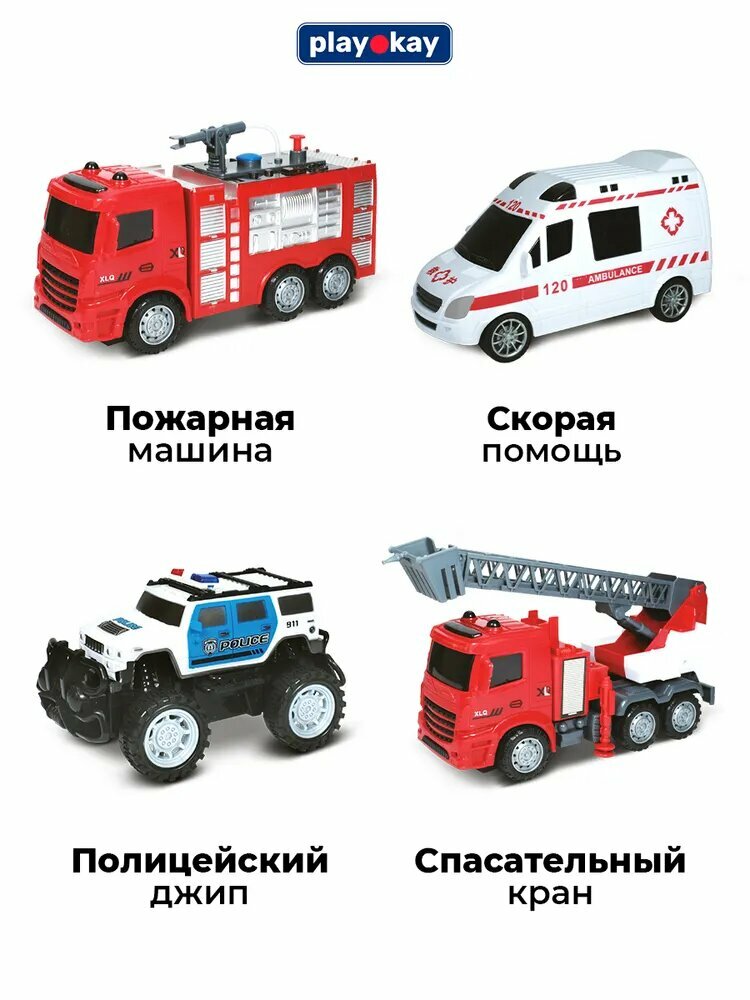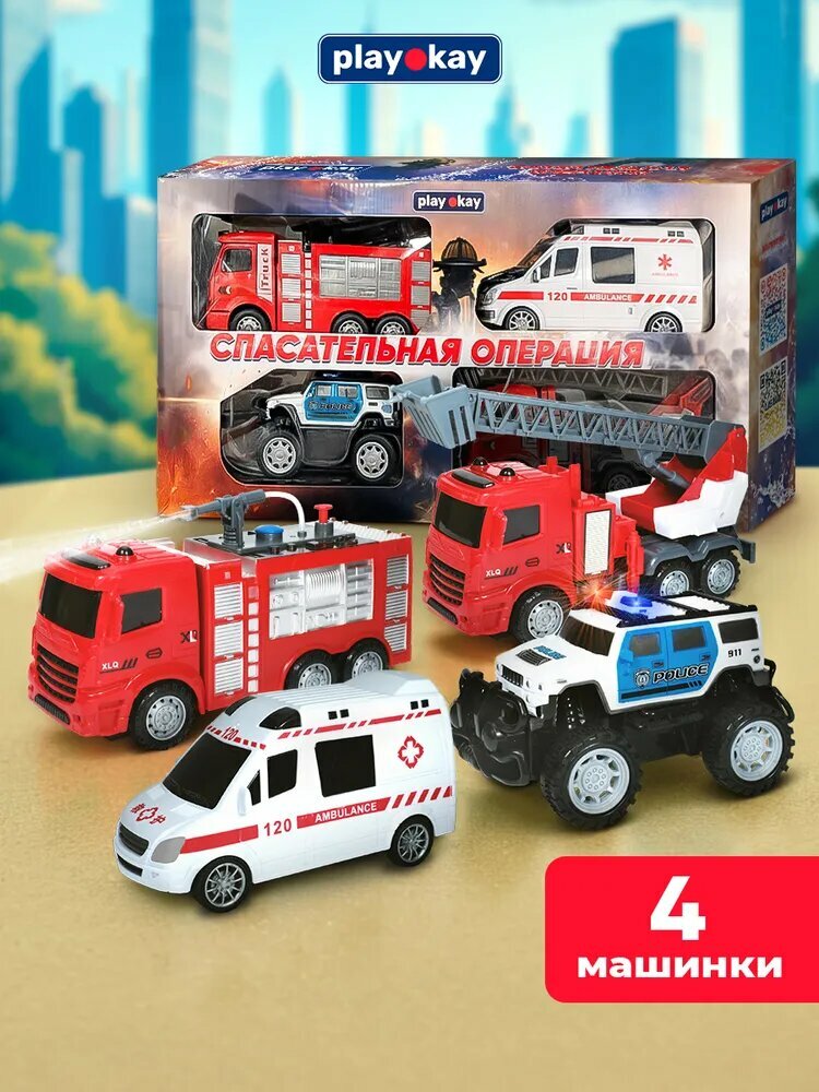 Игровой набор машинок Play Okay спасательная спецтехнкика для детей, пожарная машина и полиция, инерционные, 4 шт: сравнение цен, характеристики, фото, актуальное наличие и цены.