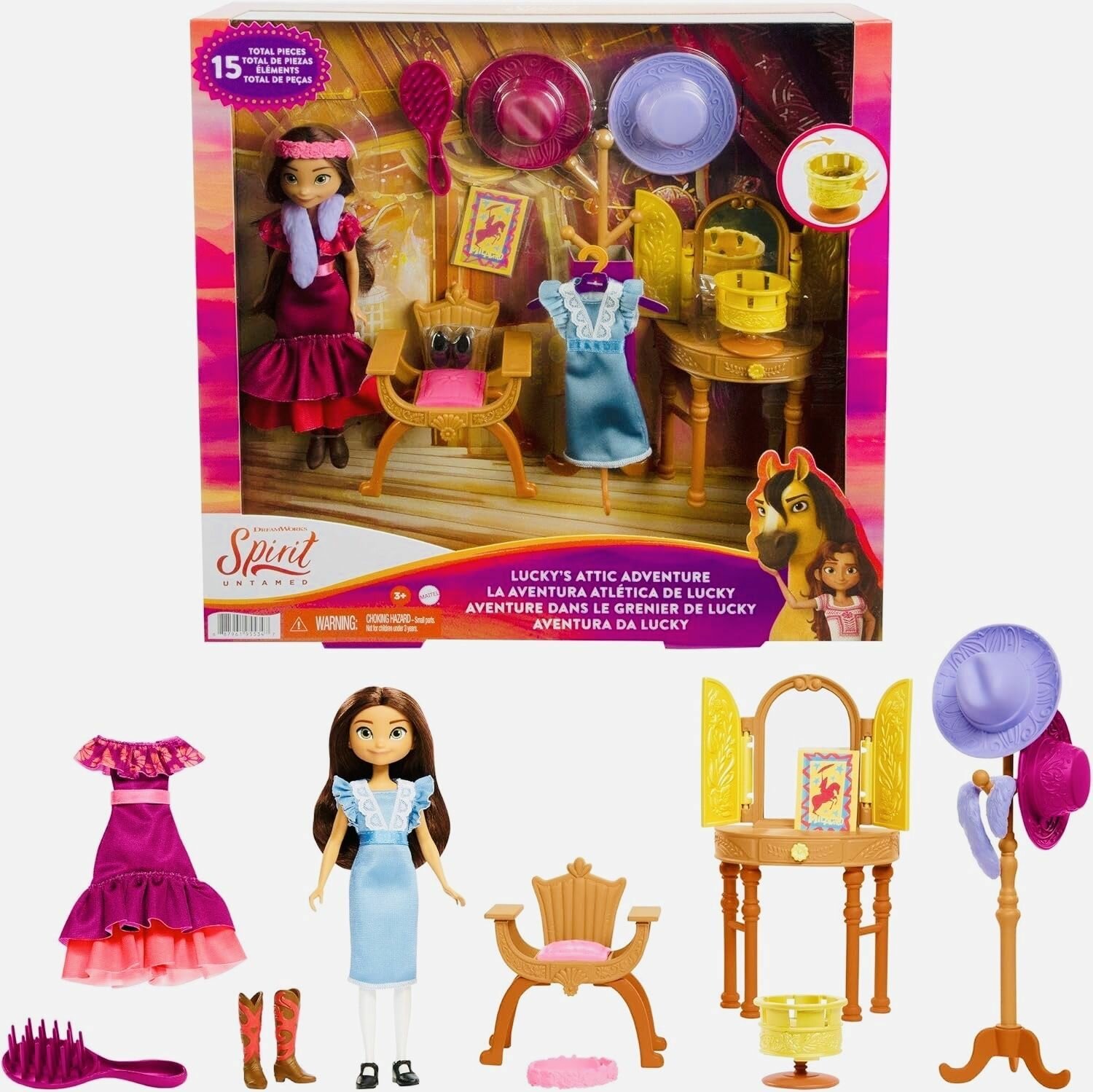 Игровой набор Mattel Приключения Лаки на Чердаке из мультфильма Спирит Непокорный Кукла Лаки (17.78 см) с Комодом, Стулом, Вешалкой, Зоотропом, Дополнительным Нарядом, Сапогами и Аксессуарами!: сравнение цен, характеристики, фото, актуальное наличие и цены.
