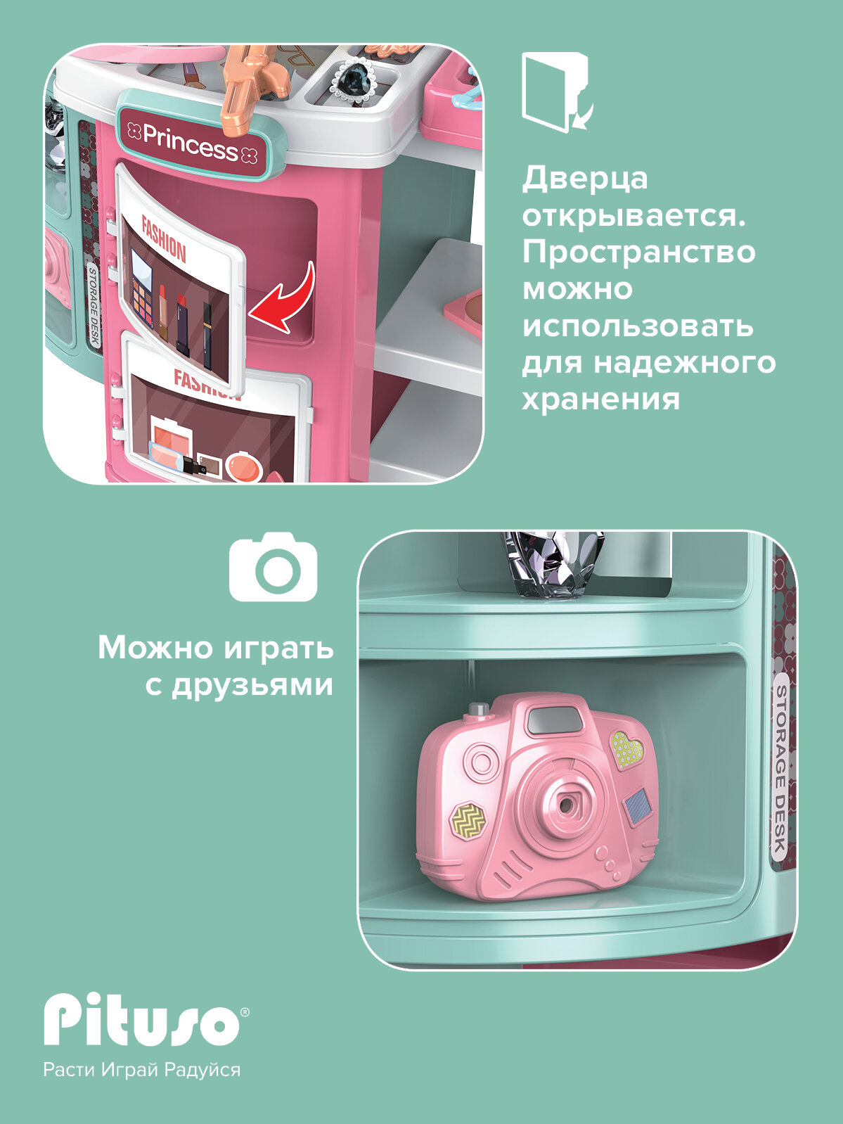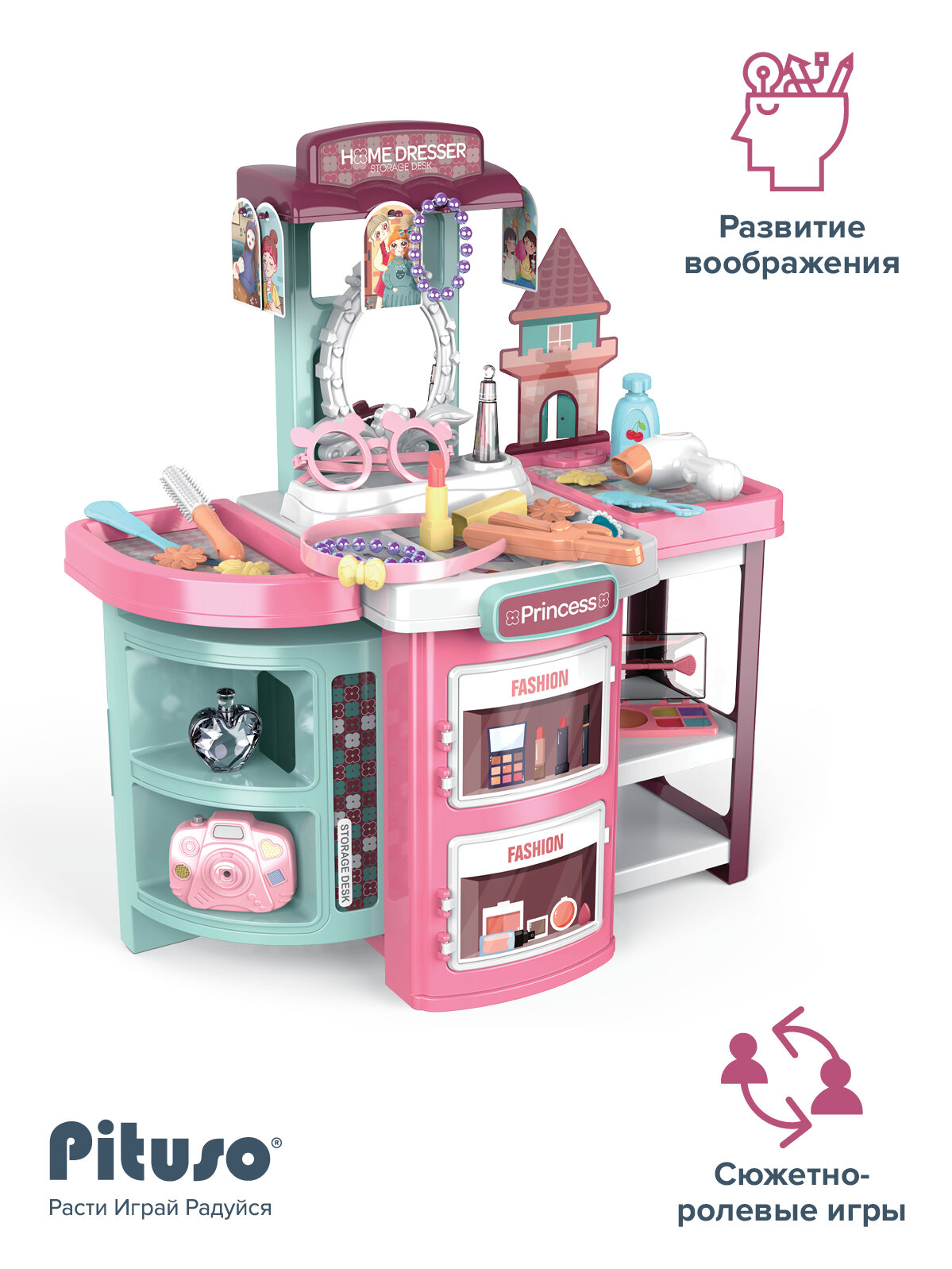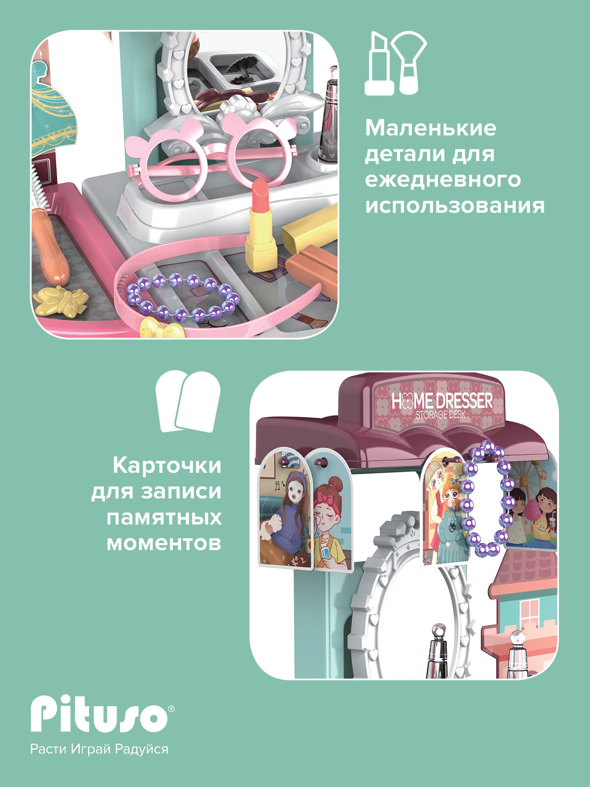 Игровой набор Pituso "Vanity Dresser" предназначен специально для девочек и включает в себя 41 предмет. Он поможет развить у ребенка чувство стиля и красоты, а также станет отличным подарком для маленьких модниц.