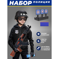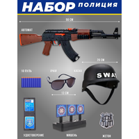 Купить Игровой набор полицейского военного, игрушка для мальчика: автомат 56см, каска и очки, значок и удостоверение, патроны 10 штук и мишень с доставкой по всей России.