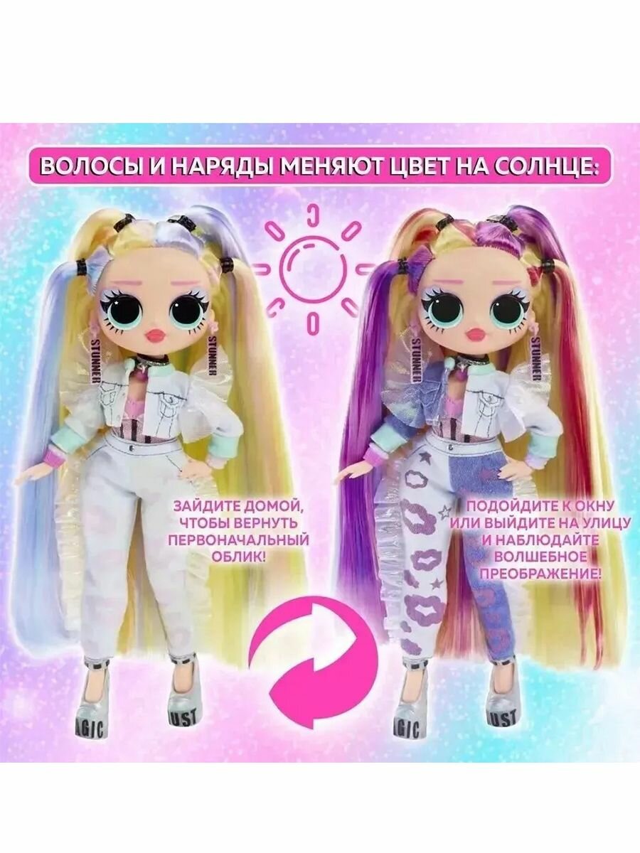 LOL Surrise OMG Sunshine Stellar Gurl, которая является не только сияющей жемчужиной, которая не может остаться незамеченной на Солнечном фестивале, но и идеальным воплощением невинных мечтаний в сердцах бесчисленных детей. Stellar Gurl - это не только сияющая жемчужина, которая не может остаться незамеченной на Солнечном фестивале, но и идеальное воплощение невинных мечтаний в сердцах бесчисленных детей. Чудо моды, оно ловко Чудо моды, оно искусно сочетает в себе реальность и фантазию, позволяя детям отправиться в путешествие с бесконечными возможностями и сюрпризами.