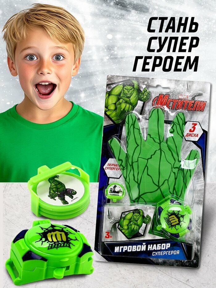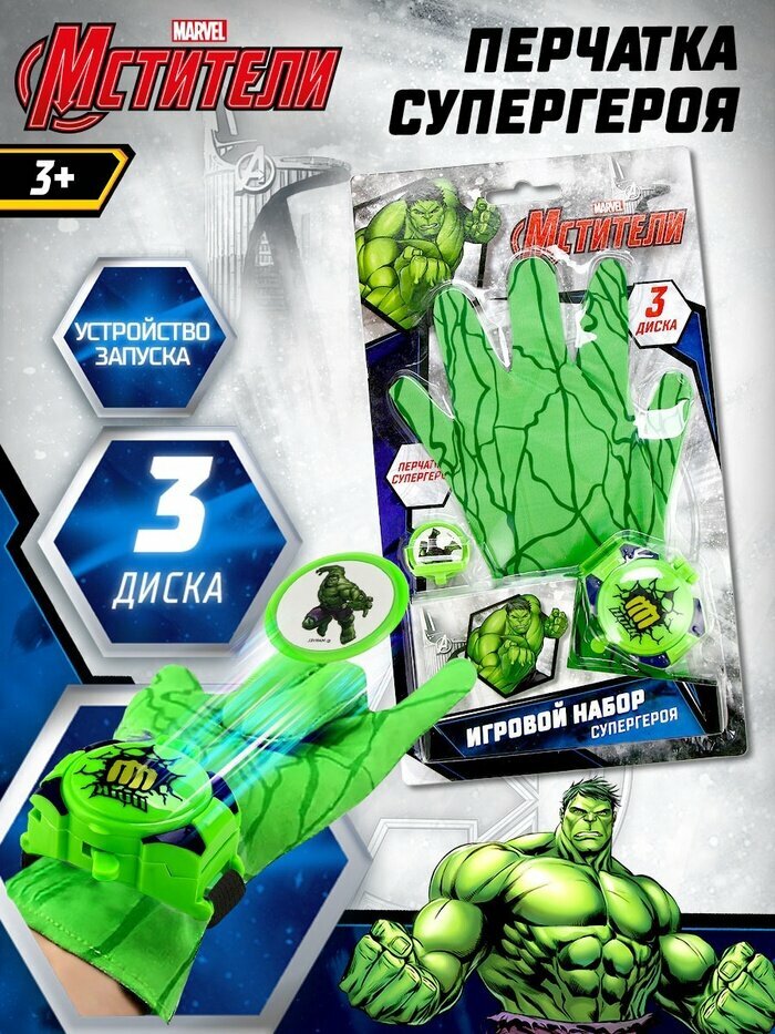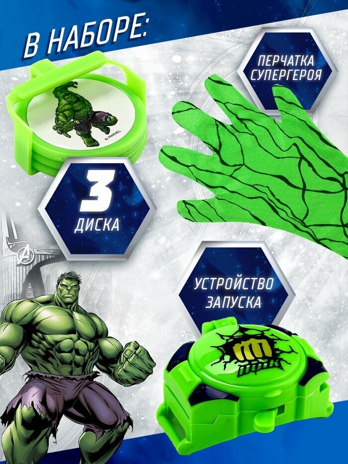 Купить Игровой набор с перчаткой супергероя «Халк», стреляет дисками, 1 устройство запуска с доставкой по всей России.