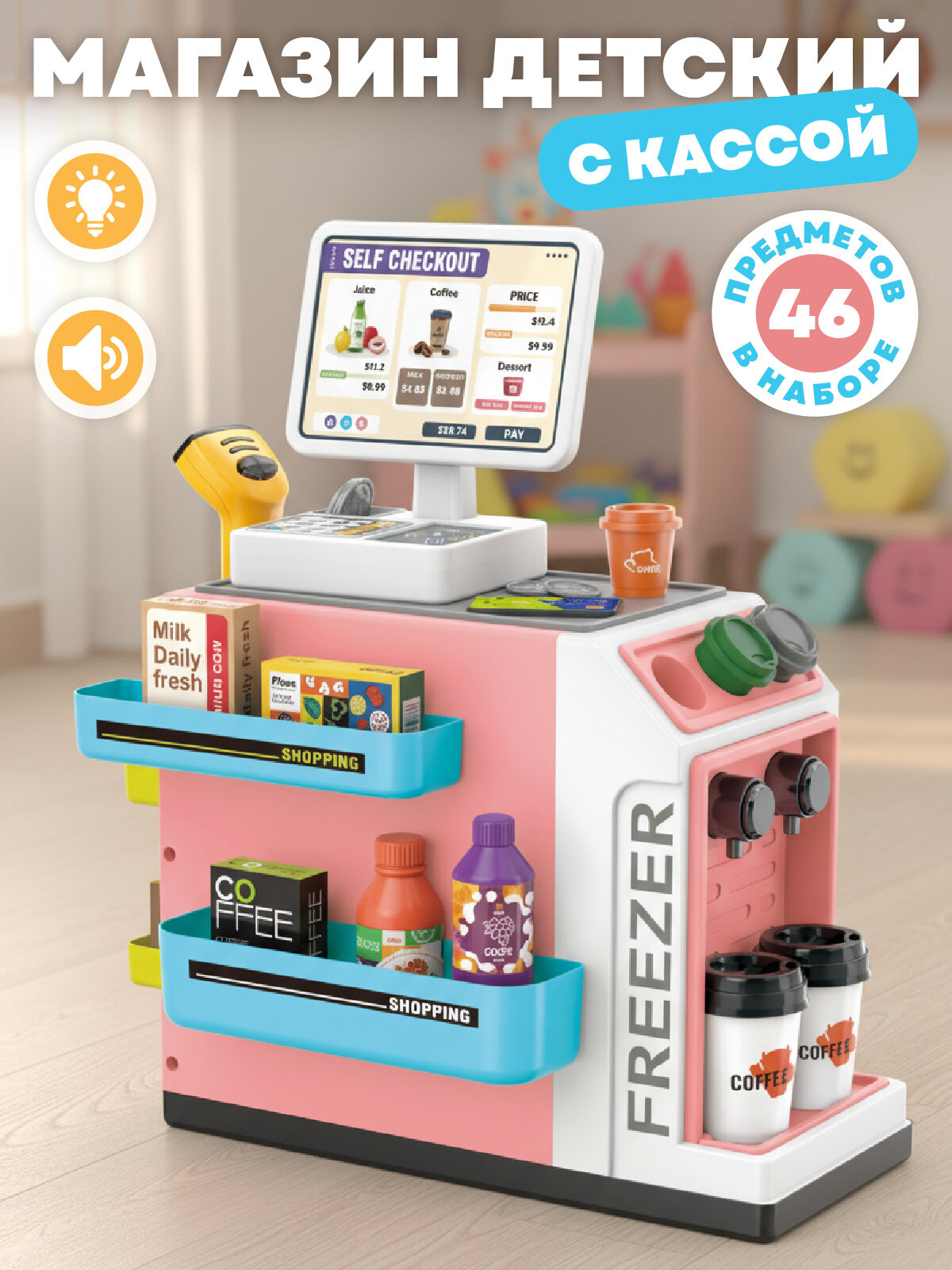 Купить Игровой набор Супермаркет Первая покупка, магазин игрушечный, касса детская, 46 предметов, свет, звук, JB0213139 с доставкой по всей России. Игровой набор Супермаркет Первая покупка, магазин игрушечный, касса детская, 46 предметов, свет, звук, JB0213139: сравнение цен, характеристики, фото, актуальное наличие и цены.