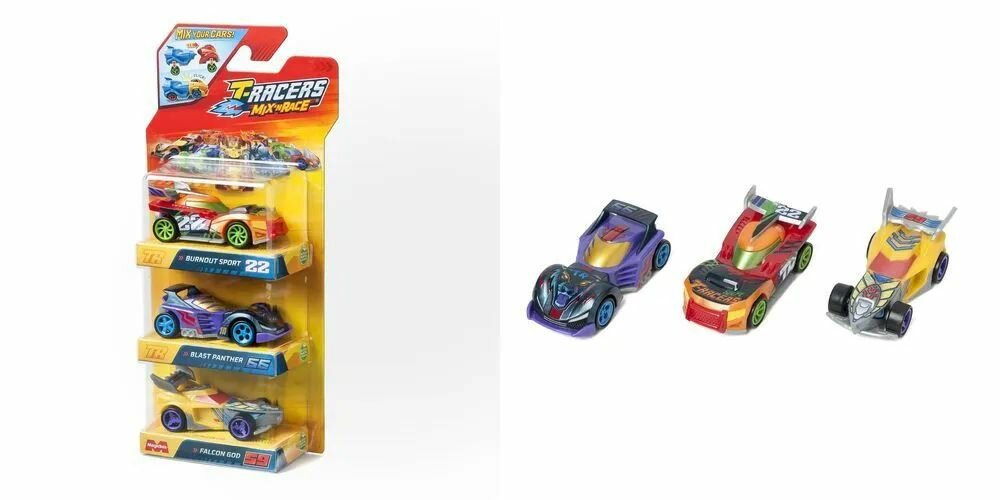 Игровой Набор T-RACERS MIX ‘N RACE. Машинки №2 (3 шт, пластик, сменные детали, в блистере) PTR7V316RU01: сравнение цен, характеристики, фото, актуальное наличие и цены.