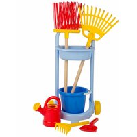 Размер упаковки: 38*38*72 см Функционал: набор для тематической игры Упаковка: сетка Страна обладатель бренда: Россия Материал: пластик Комплектация: тележка, лопата совковая, лопата штыковая, грабли веерные, метла, лейка, совок, грабли, ведро Возраст ребенка: от 1,5 лет Яркий функциональный набор для игры в садовника станет прекрасным подарком малышу. Красочный набор позволит малышу помочь родителям на даче - собирать упавшие листья, копать клумбы, подметать садовую дорожку, поливать цветы. Во время игры ребенок будет изучать формы, цвета, развивать фантазию, усидчивость и познавать окружающий мир. Игрушка выполнена из качественного, безопасного материала. Отличный детский набор для развития мелкой моторики рук и пальцев.