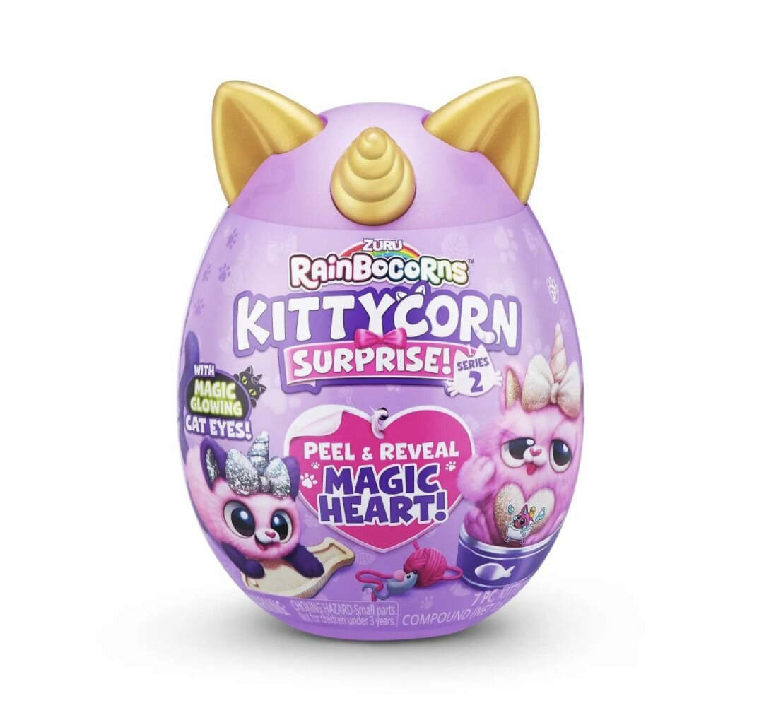 Игровой набор сюрпризы в яйце Zuru Rainbocorns Kittycorn Surprise S2 - это коллекция очаровательных котят, которые станут вашими новыми друзьями! Они имеют светящиеся глаза в темноте и волшебное сердечко, которое поможет вам узнать, что именно любит ваш питомец.