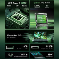 Купить Игровой ноутбук 15.6″, AMD Ryzen 5 5500U, RAM 16 ГБ, SSD 512 ГБ, AMD Radeon Vega 7, Windows Pro с доставкой по всей России.