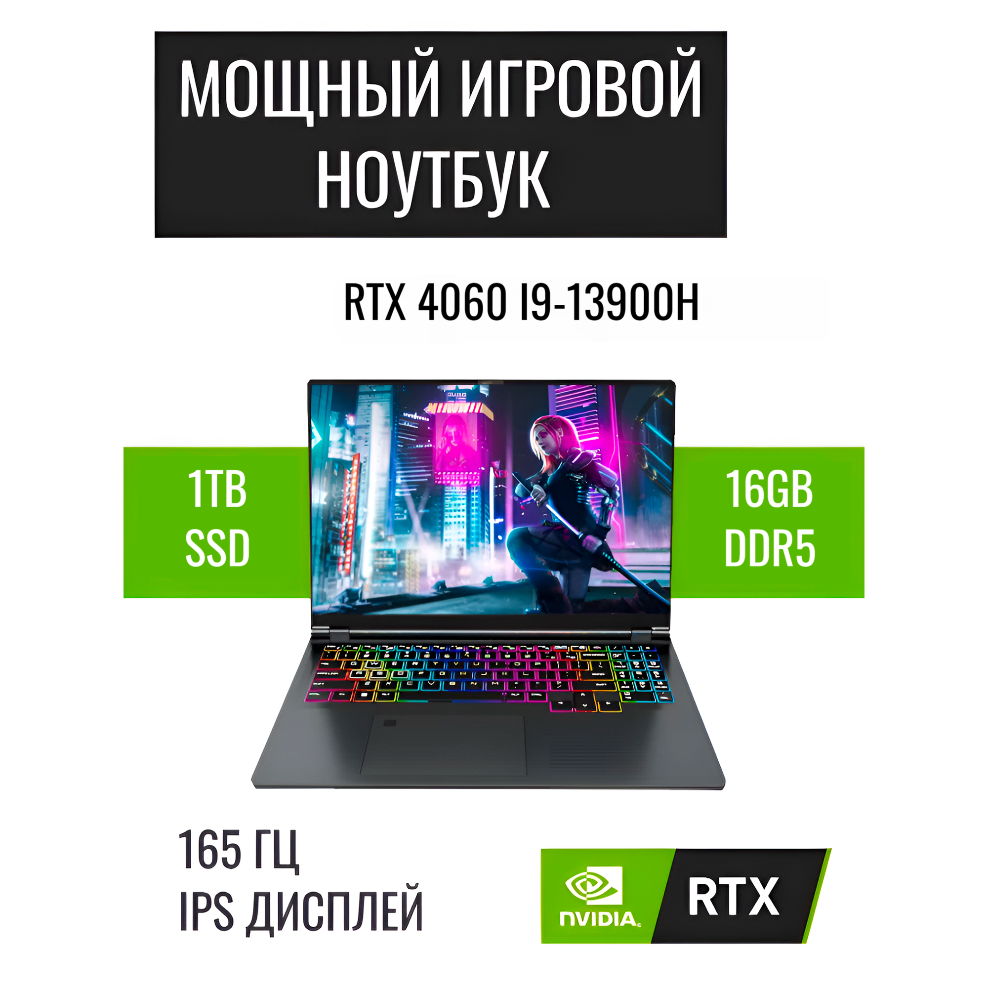 Купить Игровой ноутбук 16″, FHD IPS 165Гц , RTX 4060, I9-16″ I9-13900H+RTX 4060, RAM 16Gb DDR5, SSD 1Tb NVME с доставкой по всей России.