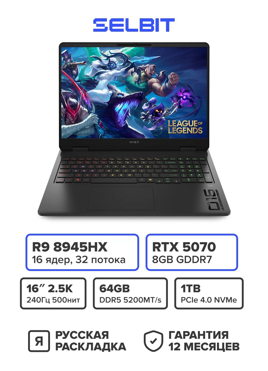 Купить Игровой ноутбук HP OMEN 16 2025, Ryzen 9 8945HX, RTX 5070, RAM 64ГБ, SSD 1ТБ, 16-ap0083AX, Русская раскладка, Черный с доставкой по всей России. Игровой ноутбук HP OMEN 16 2025, Ryzen 9 8945HX, RTX 5070, RAM 64ГБ, SSD 1ТБ, 16-ap0083AX, Русская раскладка, Черный: сравнение цен, характеристики, фото, актуальное наличие и цены.