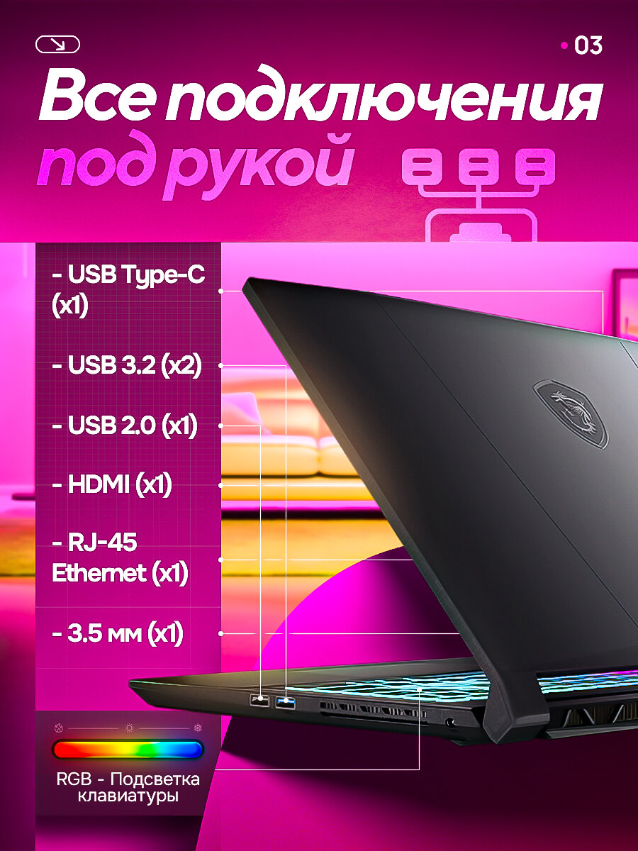 Игровой ноутбук MSI Katana A15 AI B8VG-423US, Ryzen 9 8945HS, 16GB DDR5, 1TB SSD, 15.6" FHD 144Hz, RTX 4070 8GB