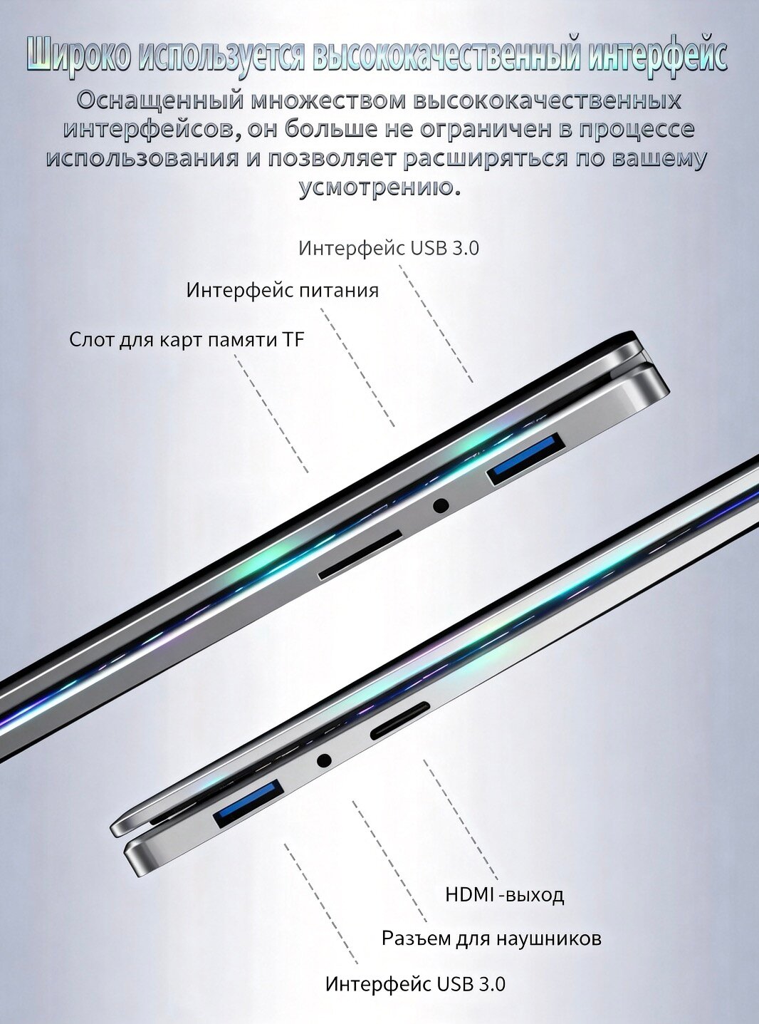 Игровой ноутбук N4000 - это мощный и надежный помощник для геймеров и ИТ-специалистов. С его помощью вы сможете наслаждаться уникальным игровым процессом благодаря мощной видеокарте и процессору с мощным 4-ядерным графическим процессором Intel(R) UHD Graphics. 14.1-дюймовый FHD-экран обеспечивает широкое поле зрения и четкое изображение даже при ярком уличном освещении. IPS-матрица гарантирует яркие и насыщенные цвета. Ноутбук оснащен 8 ГБ оперативной памяти и 256 ГБ SSD, что обеспечивает быструю и эффективную работу. Жесткий диск SSD и 8 ГБ оперативной памяти гарантируют стабильную работу даже при запуске требовательных игр и программ. Оснащенный 802.11a/b/g/g/n WiFi и Bluetooth, этот ноутбук будет усердно работать, чтобы создать для вас чистый и приятный беспроводной мир. Операционная система Windows 10 Pro повысит вашу производительность, что делает его отличным выбором для развлечений и работы. Игровой ноутбук N4000 оснащен рядом портов, включая Mini HDMI, порт Micro TF, USB 3.0 и USB, что позволяет подключать различные устройства и аксессуары. Подсветка клавиатуры и сканер отпечатков пальцев обеспечивают дополнительный комфорт и безопасность при использовании ноутбука. Вес ноутбука составляет всего 1,5 кг, что делает его легким и удобным для переноски. В комплектацию игрового ноутбука N4000 входят адаптер питания, подставка для компьютера, светодиодная USB-подсветка, USB-накопитель, коврик для мыши, гарнитура, мышь, USB-удлинитель и другие аксессуары.