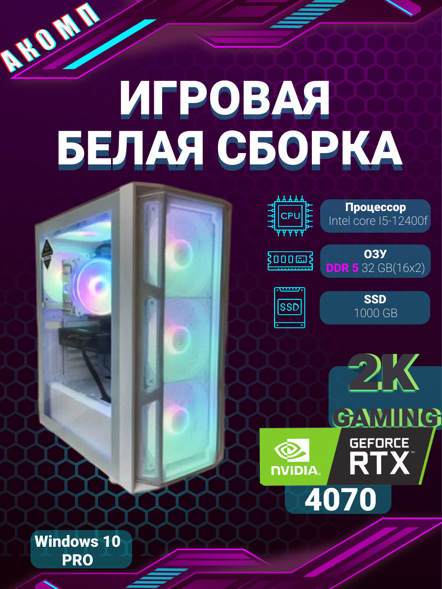 Купить Игровой ПК, белая сборка, NVIDA 4070, 32ГБ, SSD 1ТБ, Intel Core i5-12400FI с доставкой по всей России.