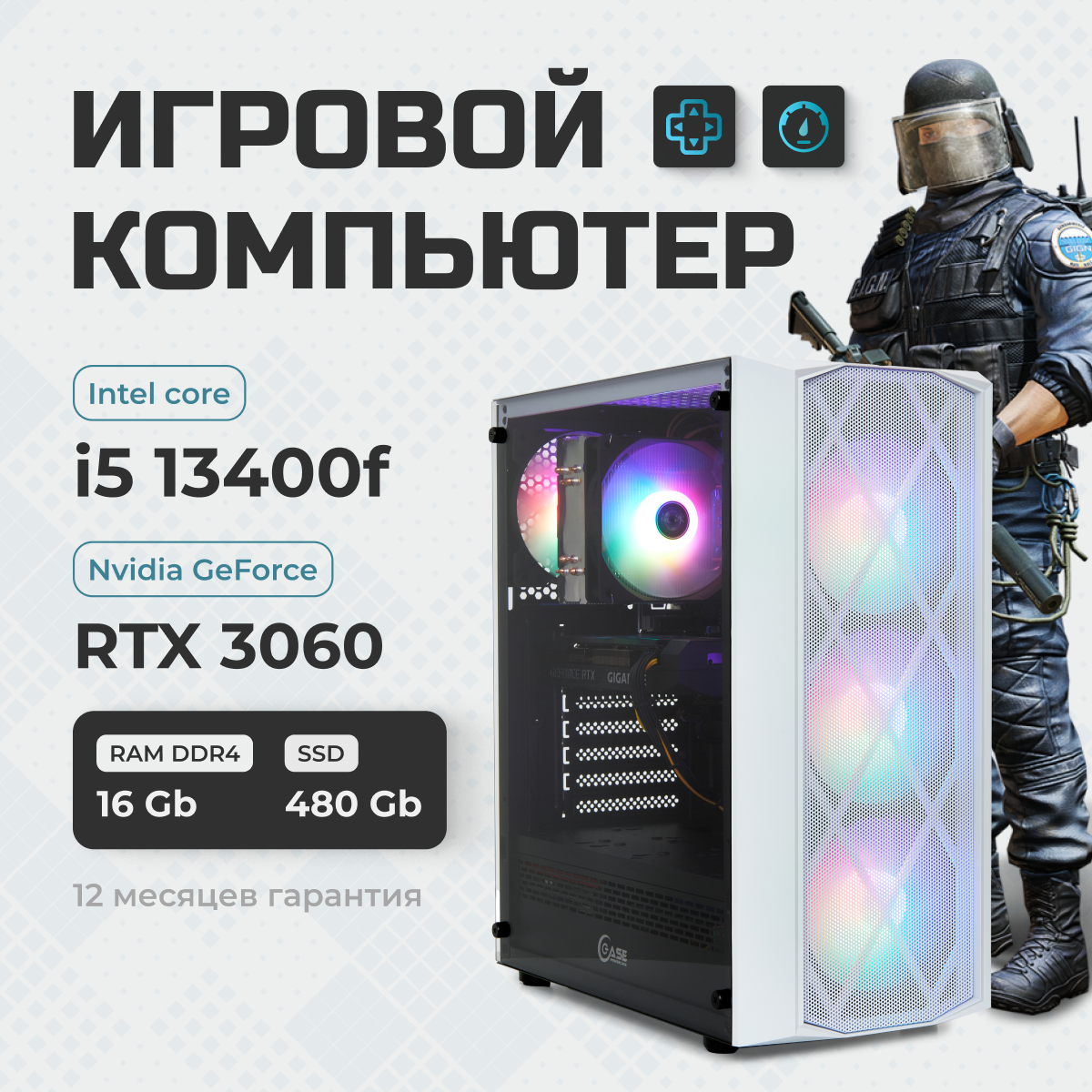 Компьютер подойдет для большинства современных игр, таких как: Cs 2, Apex, Fortnite, GTA 5, Minecraft, Cyberpunk 2077, COD: Warzone, Elden Ring, World of Tanks