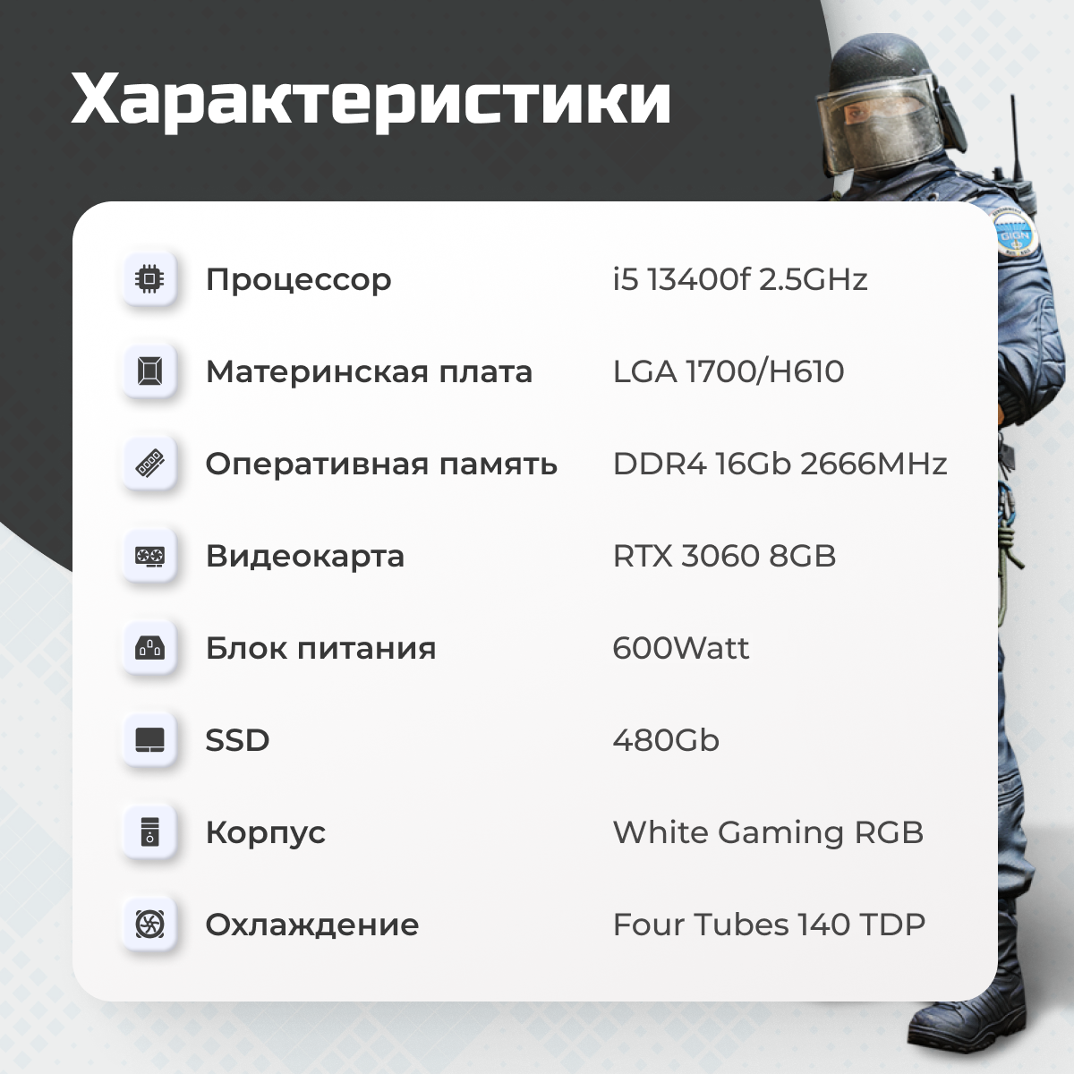 • Процессор: Intel i5 13400f 2.5 Ghz