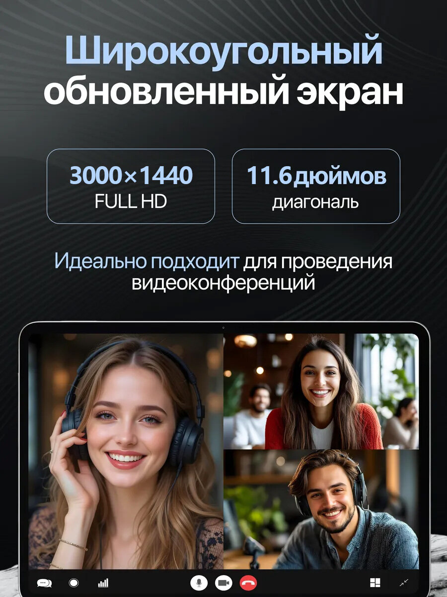 11,6-дюймовый экран с разрешением 3200x1800 пикселей и матрицей IPS обеспечивает четкость и плавность изображения. Частота обновления экрана составляет 120 Гц, что гарантирует комфорт при длительной работе с графикой или видео.