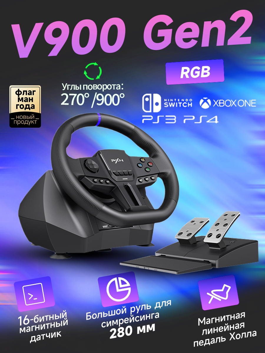 Игровой руль PXN «V900Gen2», для ПК, PS4, Switch, Xbox Series, длина кабеля Вибрационная обратная связь: сравнение цен, характеристики, фото, актуальное наличие и цены.