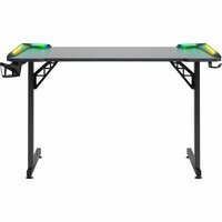 RGB подсветка. Кнопка выбора RGB подсветки. Возможность выключения подсветки. Кабель USB в комплекте. Быстрая и лёгкая сборка. 2 отверстия в столешнице для выведения проводов. В комплект входят держатель для наушников и подставка для кружки. Оптимальный размер столешницы позволяет удобно организовать игровое пространство. Прочные металлические ножки имеют пластиковые накладки для защиты напольного покрытия от царапин и других повреждений.
