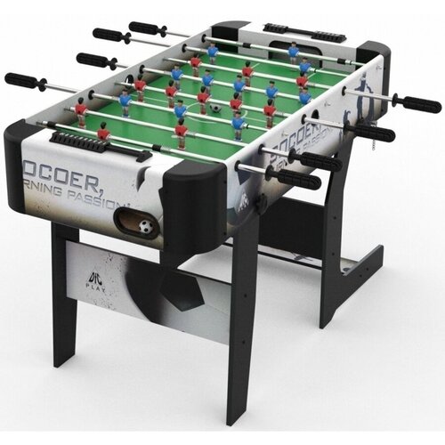 Игровой стол-футбол DFC SOCCER BP SB-ST-29398 для домашнего использования. Складная модель. Боковые стороны из МДФ ламинированным ПВХ высотой 19,5 см и толщиной 12 мм. Стороны со стороны игроков высотой 19,5 см и толщиной 9 мм. L-образная ножка из МДФ толщиной 15 мм, средняя – 12 мм. Телескопические стержни диаметром 13 мм с хромированным покрытием. В комплекте 2 футбольных мяча 31 мм диаметром.
