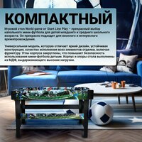 Игровой стол World game от Start Line Play – прекрасный выбор напольного мини-футбола для детей младшего и среднего школьного возраста. Он прекрасно подходит для веселого и интересного времяпровождения. Универсальная модель, которую отличает яркий дизайн, устойчивая конструкция, качество исполнения всех элементов отделки, включая фурнитуру. Углы корпуса закруглены, что повышает безопасность использования мини-футбола детьми. Корпус и опоры стола выполнены из МДФ, выдерживающего высокие нагрузки. Монтаж игрового стола не представляет сложностей. Его легко собрать своими силами. В комплекте поставляется инструкция по сборке, уходу и правила игры.