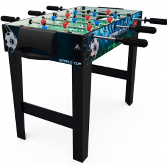 Игровой стол DFC WORLDCUP представляет собой идеальное сочетание качества и стиля. Выполнен из прочного и долговечного материала – МДФ, который гарантирует стабильность и надежность конструкции. Толщина в 12 миллиметров со стороны игроков и 5 мм с боковых сторон обеспечивает прочность и устойчивость к повреждениям. Ламинированное ПВХ покрытие игрового поля придает столу привлекательный вид и повышает его износостойкость. Размеры игрового поля составляют 77х39 сантиметров, что делает игру комфортной и захватывающей. В комплекте с настольным футболом вы получите два футбольных мяча, которые обеспечат реалистичность игры, и механический счетчик для подсчета очков. Стержни диаметром 8 мм уже в сборе с игроками. Ножки толщиной 9 мм, перекладина между ножками толщиной 4,2 мм.