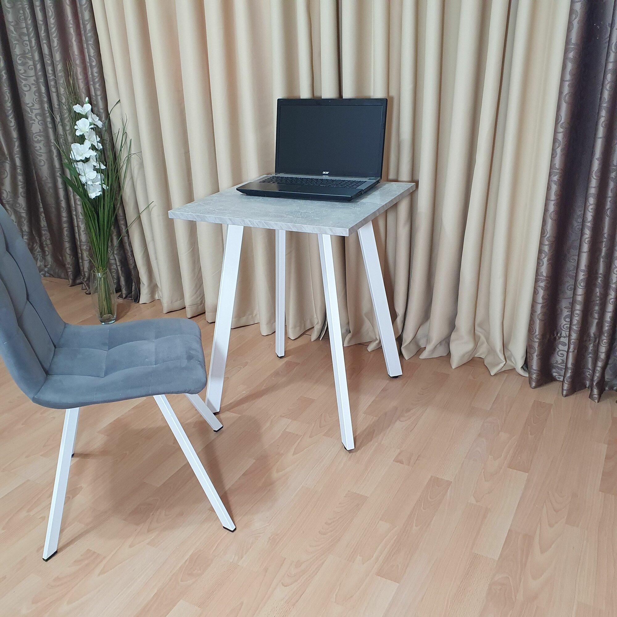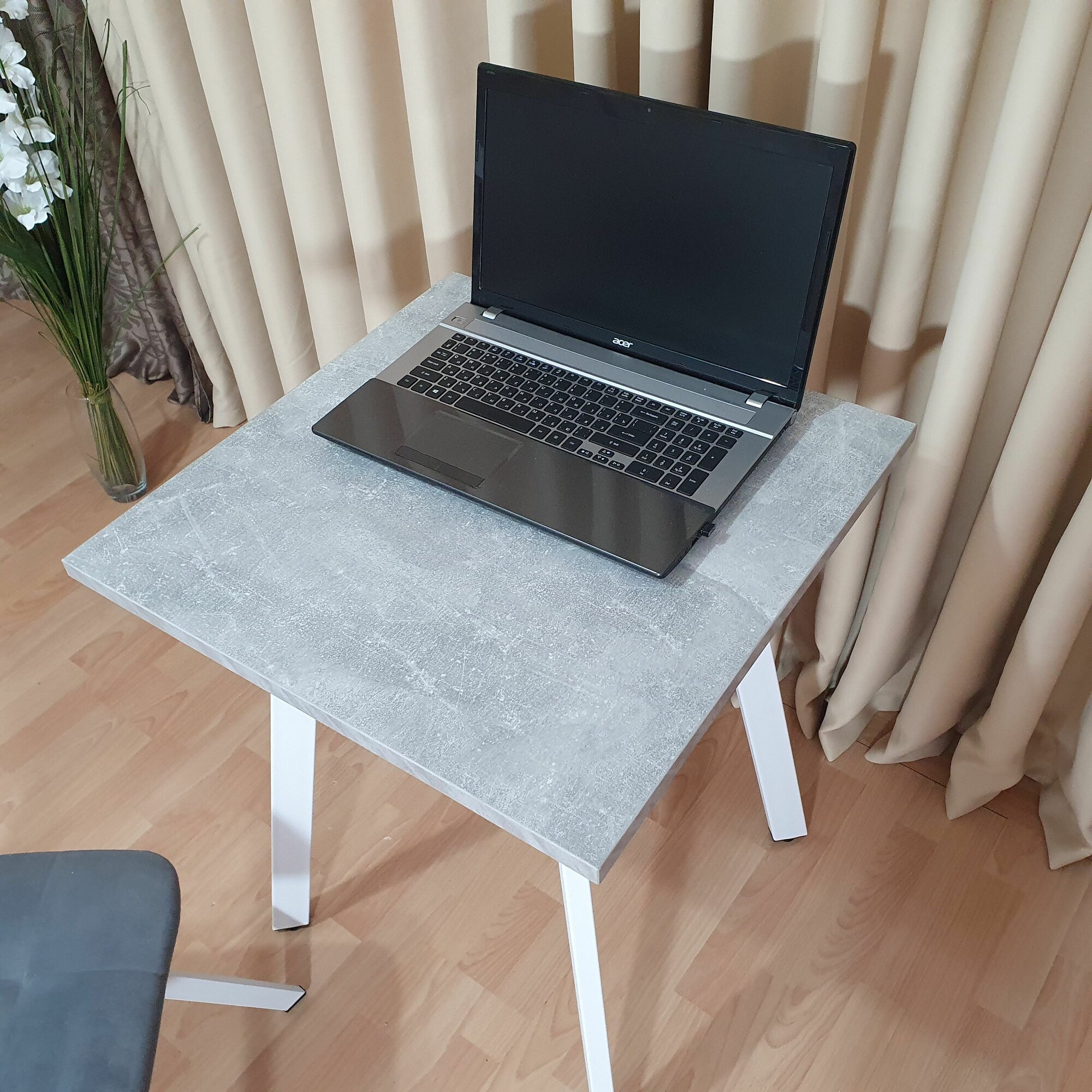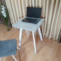 Игровой стол Ник 60 * 60 см. Бетон светлый. Белые ножки