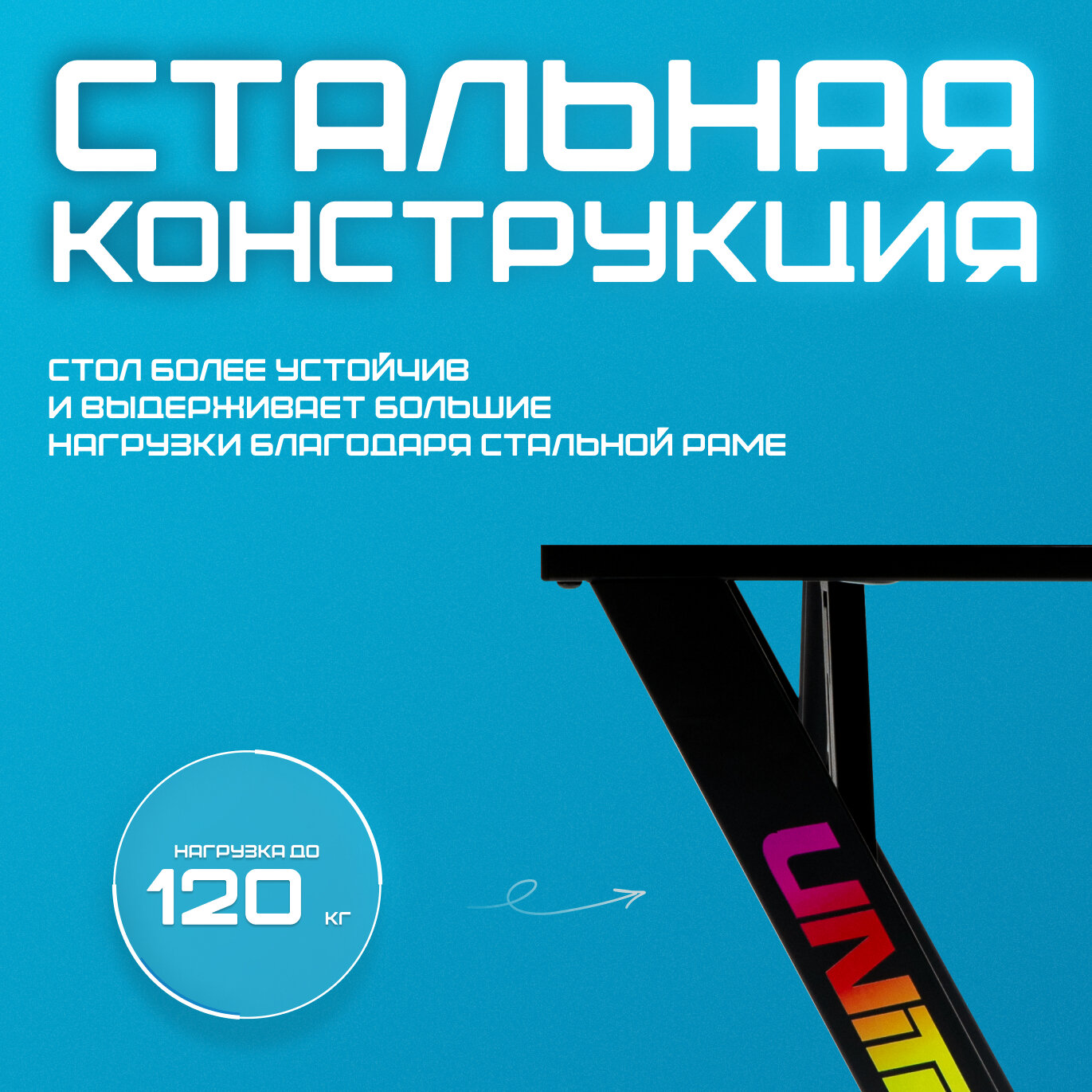 Игровой стол UNITED GAMER ARGON разработан специально для геймеров. Стол оснащен RGB-подсветкой, имеет карбоновое покрытие и прочное металлическое основание. Стол комплектуется держателем для наушников и подставкой для кружки. В столешнице предусмотрены 2 выхода для проводов. Длина столешницы - 120 см. Глубина - 60 см. Высота стола - 75 см. Толщина столешницы - 1.8 см. Для включения RGB-подсветки требуется источник питания 5V USB. Можно подключить к USB-порту компьютера, зарядному устройству мобильного телефона или блоку питания.