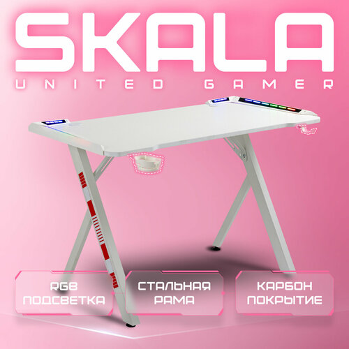 Игровой стол UNITED GAMER SKALA создан специально для геймеров. Стол оснащен RGB-подсветкой, имеет стильное карбоновое покрытие белого цвета и прочное металлическое основание. Стол комплектуется держателем для наушников и подставкой для кружки. В столешнице предусмотрены 2 выхода для проводов. Длина столешницы - 120 см. Глубина - 60 см. Высота стола - 75 см. Толщина столешницы - 1.8 см. Для включения RGB-подсветки требуется источник питания 5V USB. Можно подключить к USB-порту компьютера, зарядному устройству мобильного телефона или блоку питания.