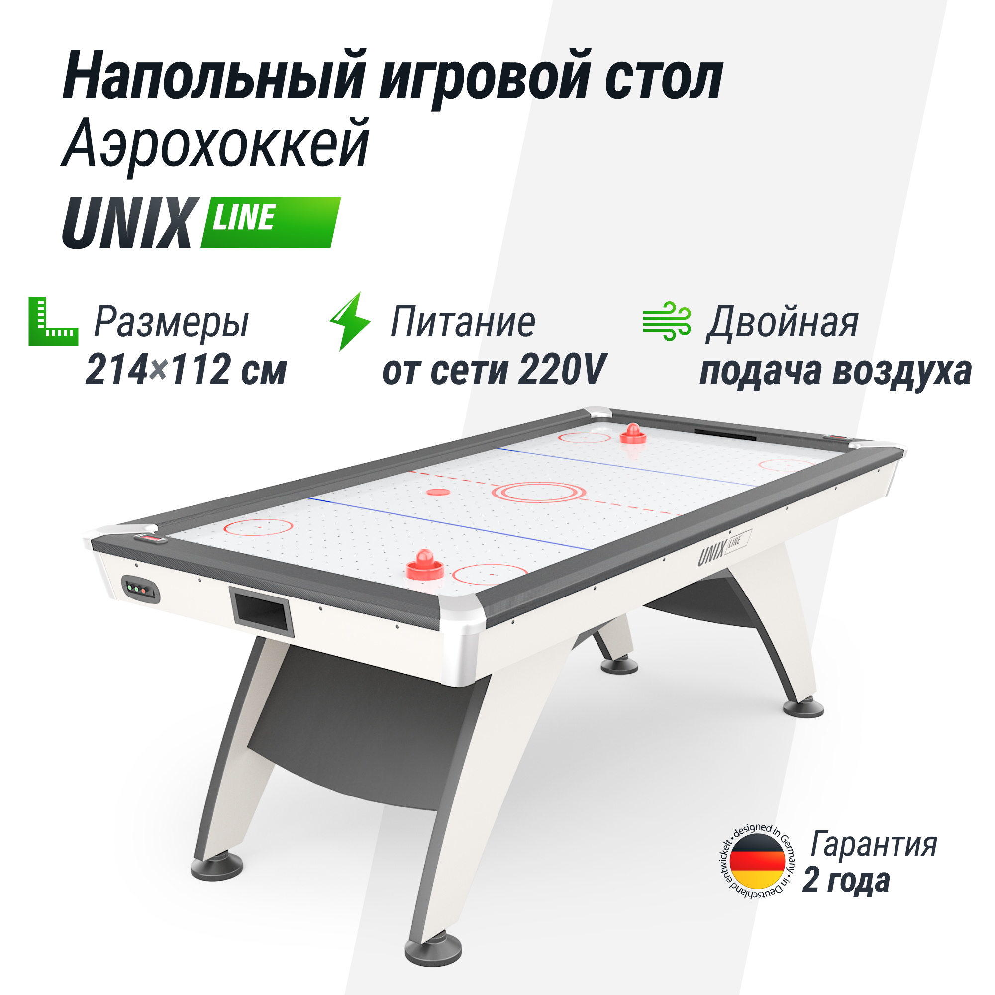 Купить Игровой стол Unix Line Аэрохоккей (214х112 cм) White (GTH214X112EWT) с доставкой по всей России.