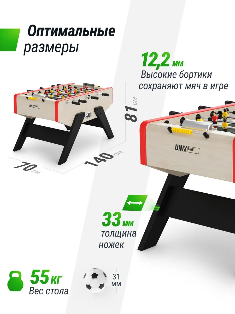 Игровой стол Unix Line Футбол - Кикер (140х70см) Light Wood - это уникальное решение для любителей футбола. Он не только обеспечивает реалистичные ощущения от игры, но и позволяет проводить время с пользой, развивая свои навыки и координацию движений.