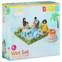Игровой центр подойдёт для придомового участка. В комплект входит разбрызгиватель, надувные игрушки и мячики. Особенности * Разбрызгиватель подключается к стандартному садовому шлангу. * Шарики можно использовать как снаряд для метания в жерло вулкана. * Бортики игрового центра надувные. * Игрушки можно использовать отдельно.