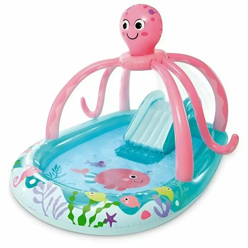 Купить Игровой центр Intex Дружелюбный осьминог 56138 с разбрызгивателем, горкой и кольцами с доставкой по всей России.