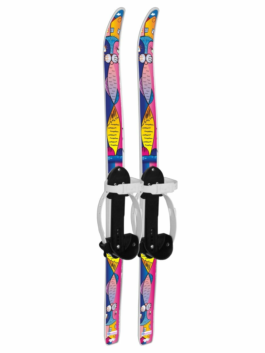 Лыжный комплект : детские лыжи с палками и креплениями. Лыжи длиной 90 см с палками 90 см в красочной упаковке, предназначенные для начинающих лыжников возрастом от 3-х лет. Универсальные пластиковые регулируемые крепления подходят для повседневной обуви. Размер обуви - 28-34. Предельно допустимая нагрузка на изделие - 40 кг.