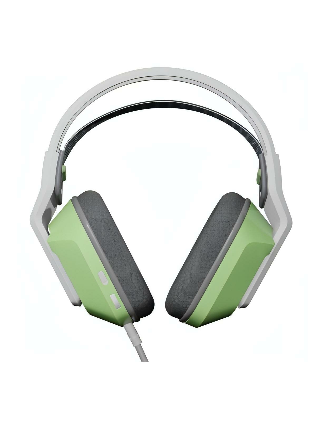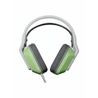 Игровые наушники Biackzid H1 Testudo (BLZ-H1TESTU), белый/зеленый - модель проводного типа, длина кабеля - 2 м, благодаря чему он не сковывает движения. Надежную защиту обеспечивает прочная нейлоновая оплетка, защищающая от переламывания и перекручивания. Велкро-липучка позволяет смотать и закрепить излишек шнура при необходимости. Интерфейс подключения к ПК или ноутбуку - USB Type A. Наушники накладные, амбушюры мягкие, отделаны сетчатым материалом, пропускающим воздух, оголовье облегченное, широкий ремешок-резинка дает возможность регулировать посадку. Такая конструкция обеспечивает комфорт даже при длительном ношении. Модель поддерживает частотный диапазон от 20 Гц до 20 кГц, чувствительность составляет 114 дБ, сопротивление - 32 Ом. Излучатели обладают диаметром 50 мм и передают точный, детализированный звук, включая насыщенные басы. На чаше расположены кнопки управления громкостью и микрофоном (можно отключить). Встроена эффектная RGB-подсветка. Вес наушников - 250 г.