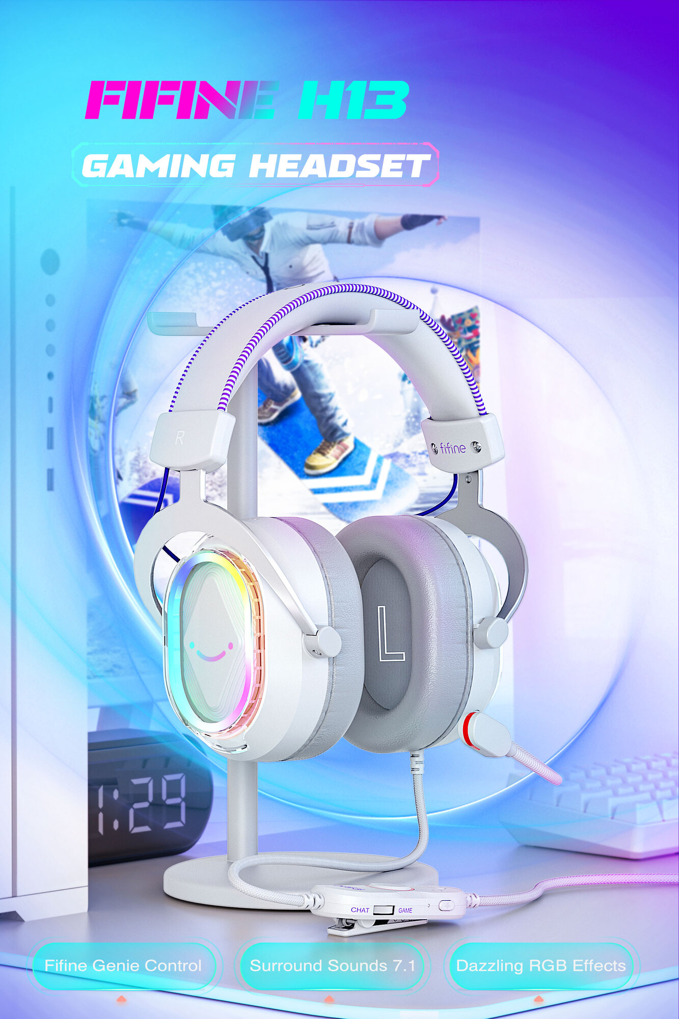 Легкий вес в 315 грамм и продуманная конструкция с металлическим креплением чашек делают наушники удобными для длительного использования. Наличие регулятора громкости на корпусе позволяет быстро настраивать звук без необходимости отвлекаться на настройки в системе. Съемный микрофон и качественная звукоизоляция делают Fifine H13 отличным выбором как для игр, так и для работы или общения в мессенджерах.